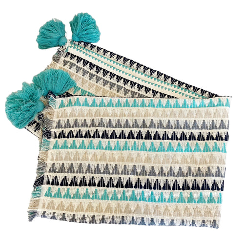 Shiraleah | Cream Beige Teal Gray Blue Tribal Print Blend Throw Accent Blanket