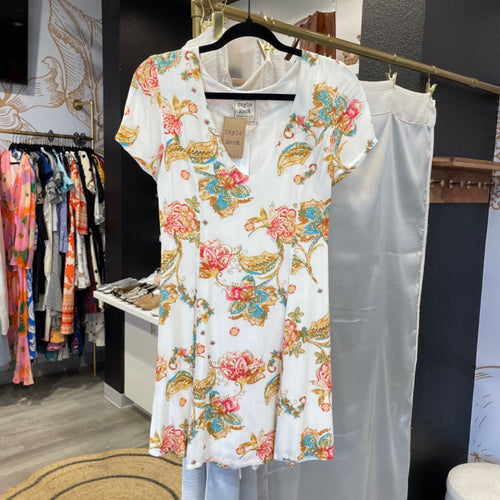 Style Rack | Women's White and Yellow Floral Print Fit and Flare Dress with Tags | Size: S