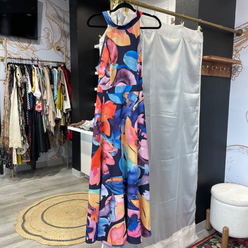 Tahari | Women's Colorful Paint Halter Maxi Dress | Size: 8