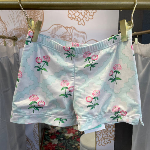 Sweet Honey | Girl's White and Blue Floral Print Active Shorts | Size: 10Y