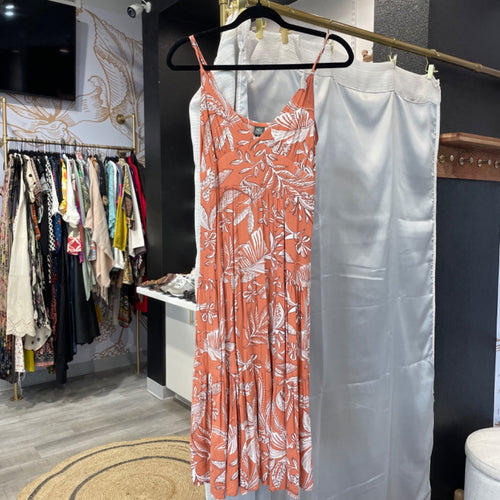 Wild Fable | Women's Orange and White Floral Print Midi Dress | Size: M