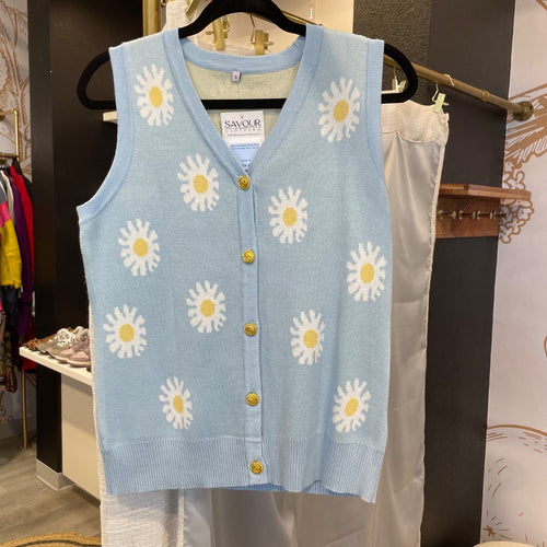 Women's Blue Flower Print Knit Sweater Vest | Size: S