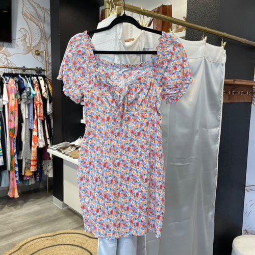 Blashe | Women's Blue and Red Floral Print Short Sleeve Mini Dress with Tags | Size: M