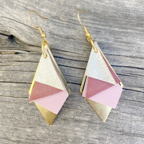 Coro Jewelry | Pink, Red and Metallic Gold & Gold Geometric Leather and Metal Earrings with Tags