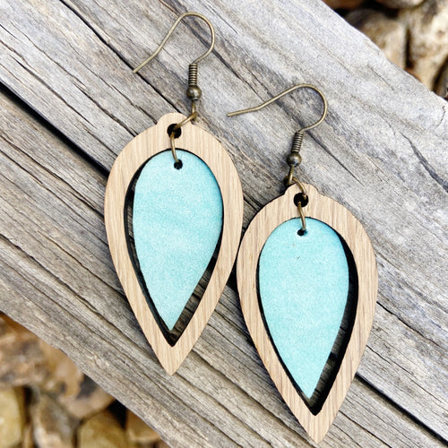 Coro Jewelry | Bi-Layer Wood Earrings "Inverted" - Light Teal with Tags