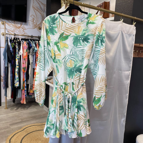 Gianni Bini | Women's Green Tropical Print Dress with Belt with Tags | Size: S