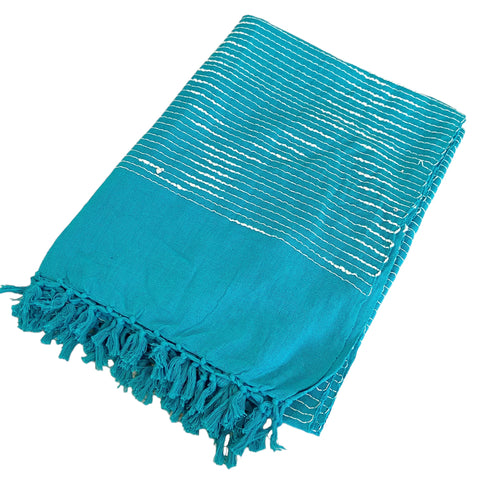 Kharma Living | Teal and White Embroidered Stripe Cotton Throw Blanket