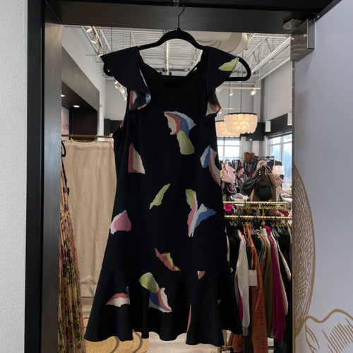 Fab'rik | Women's Black Floral Print Ruffle Dress | Size: S