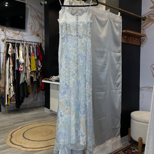 Love Shack Fancy | Women's Light Blue Floral and Lace Maxi Dress | Size: S