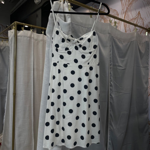Skies Are Blue | Women's Cream and Blue Polka Dot Dress with Tags | Size: M