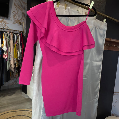 Endless Rose | Women's Hot Pink One Shoulder Knitted Mini Dress with Tags | Size: S