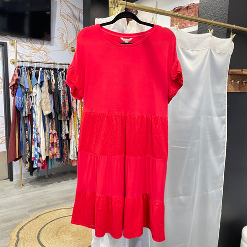 Matilda Jane | Women's Bright Red Short Sleeved Tiered Dress with Tags | Size: S
