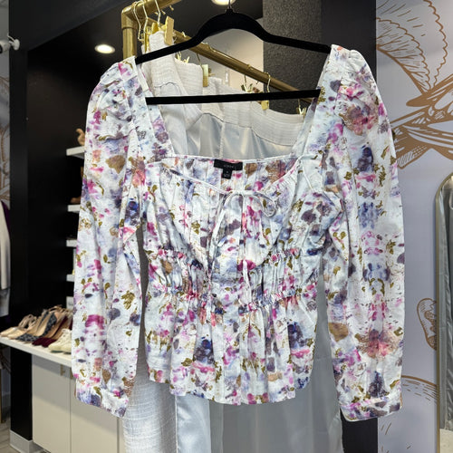 J. Crew | Womens White Purple Pink Watercolor Long Sleeve Crop Top | Size: 4