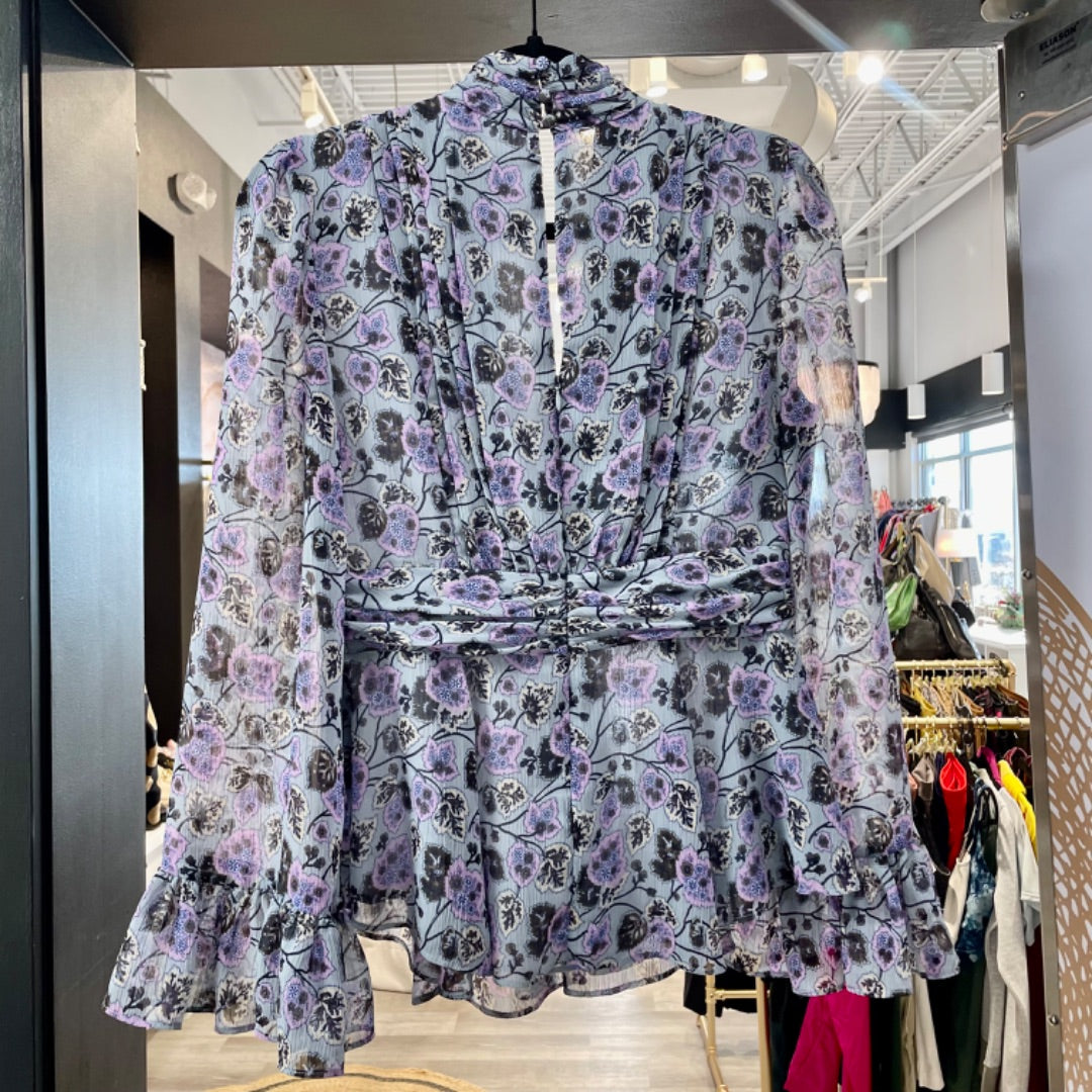 5 A 7 | Women's Blue and Purple Floral Long Sleeve Blouse | Size: S