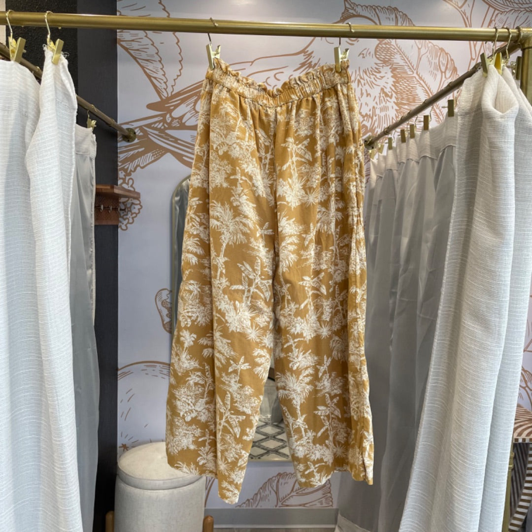 American Eagle | Women's Gold and Cream Paperbag Waist Wide Leg Crop Pants | Size: L