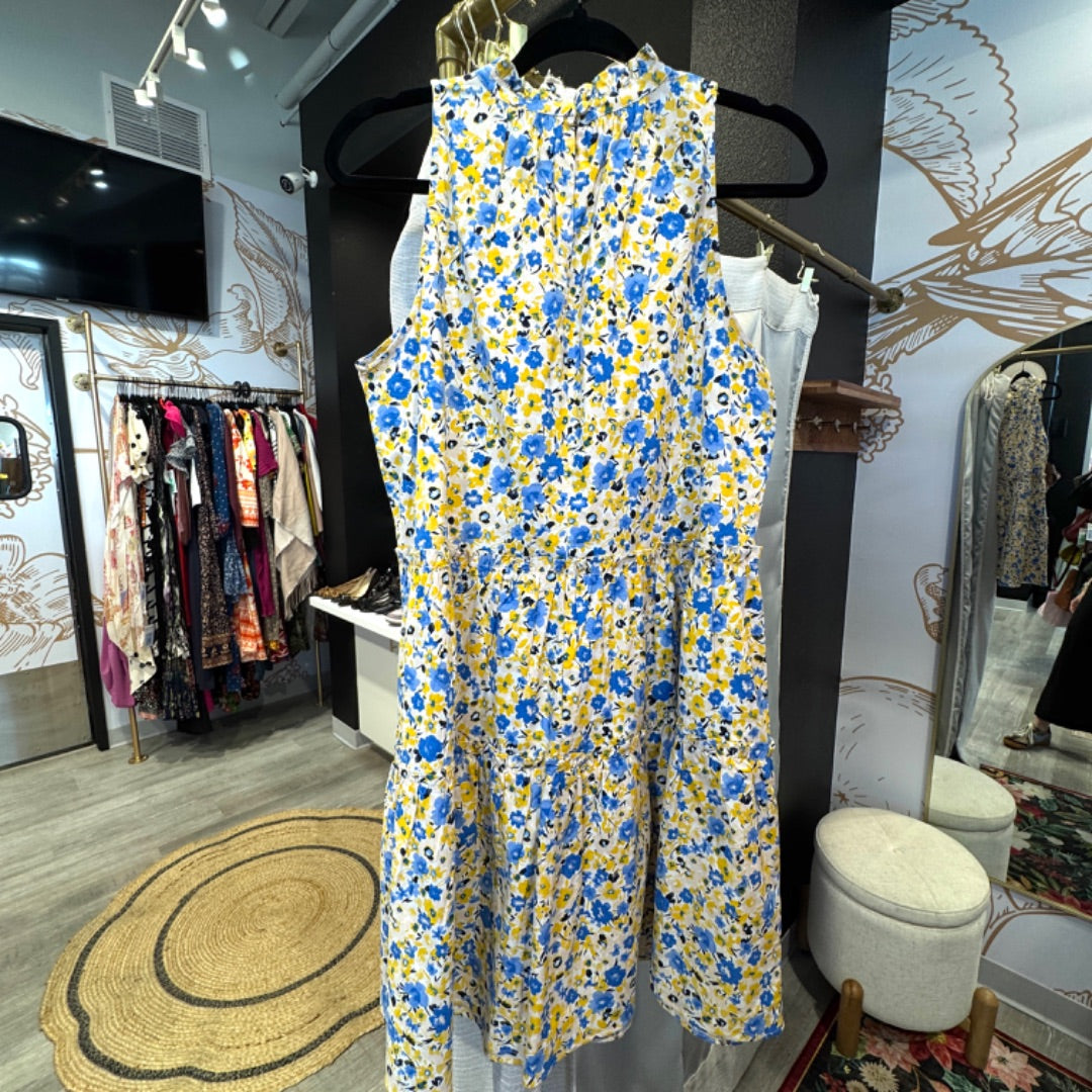 Ann Taylor | Women's Blue and Yellow Floral Print Dress | Size: S