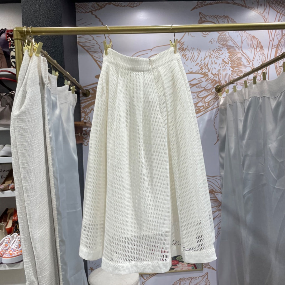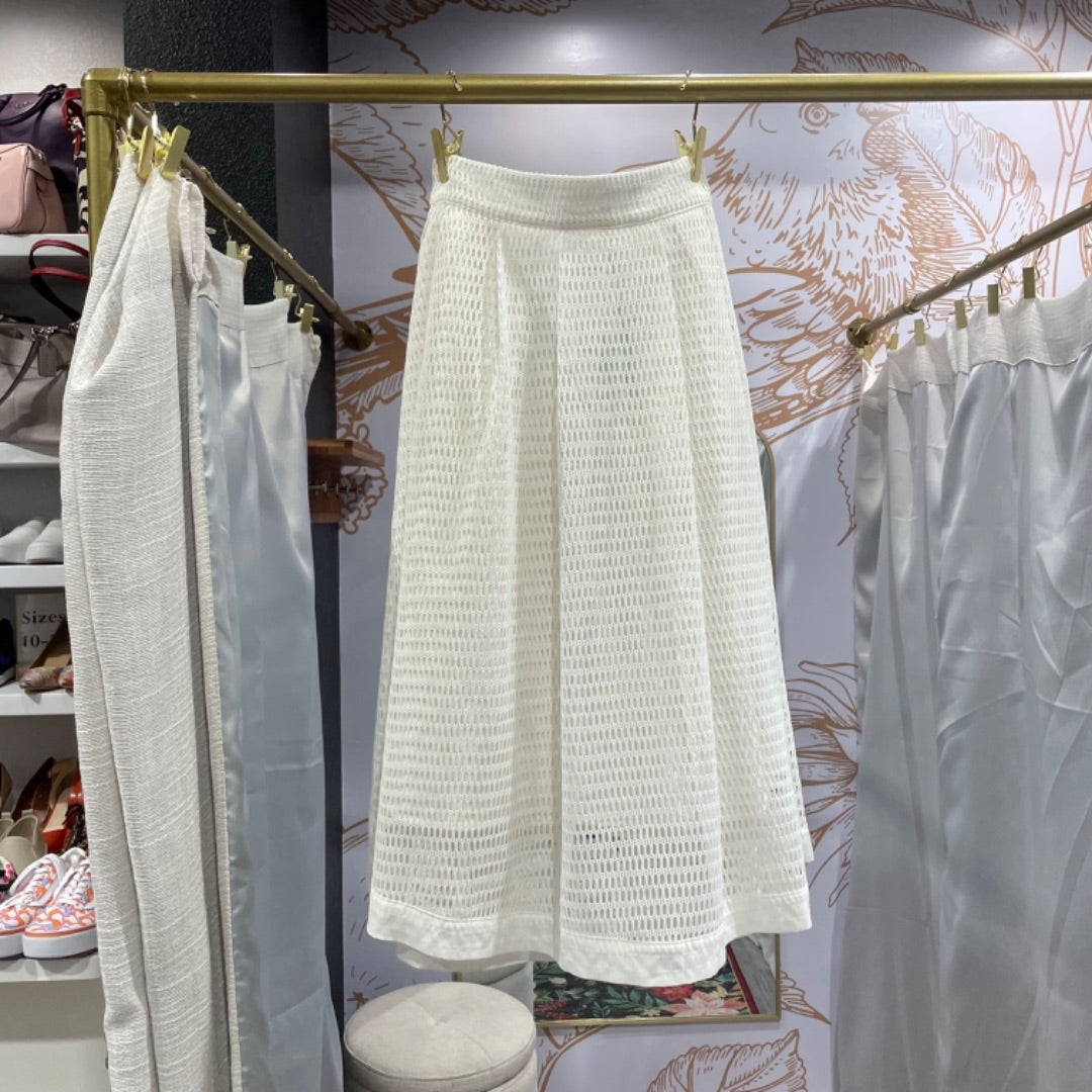 Beulah Style | Women's Cream Eyelet Midi Flare Skirt | Size: S
