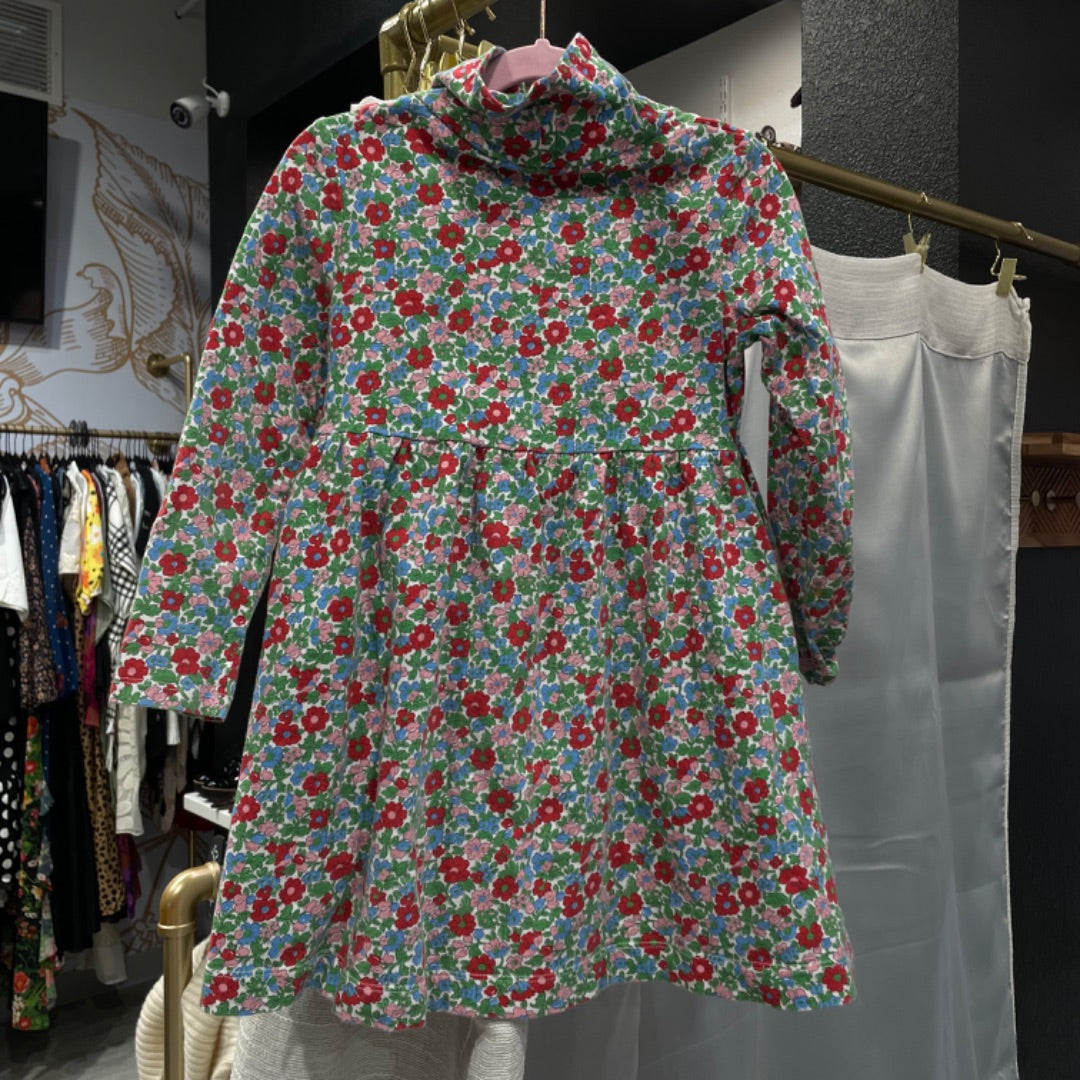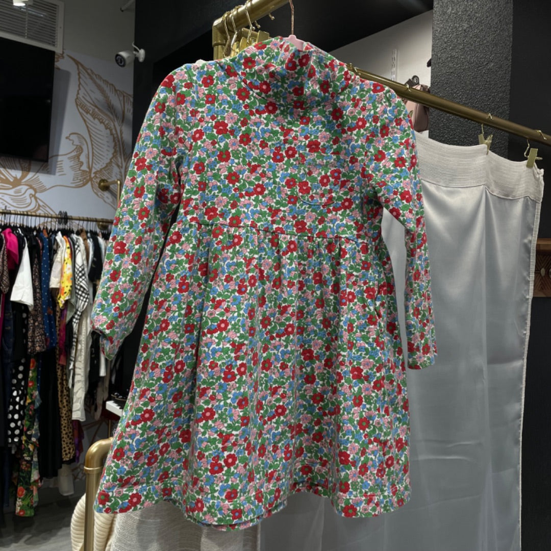 Boden | Girl's Green and Red Floral Long Sleeve Dress | Size: 6-7Y