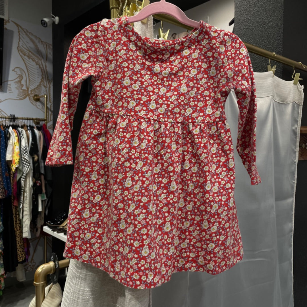 Boden | Girl's Red Floral Print Long Sleeve Dress | Size: 4-5Y