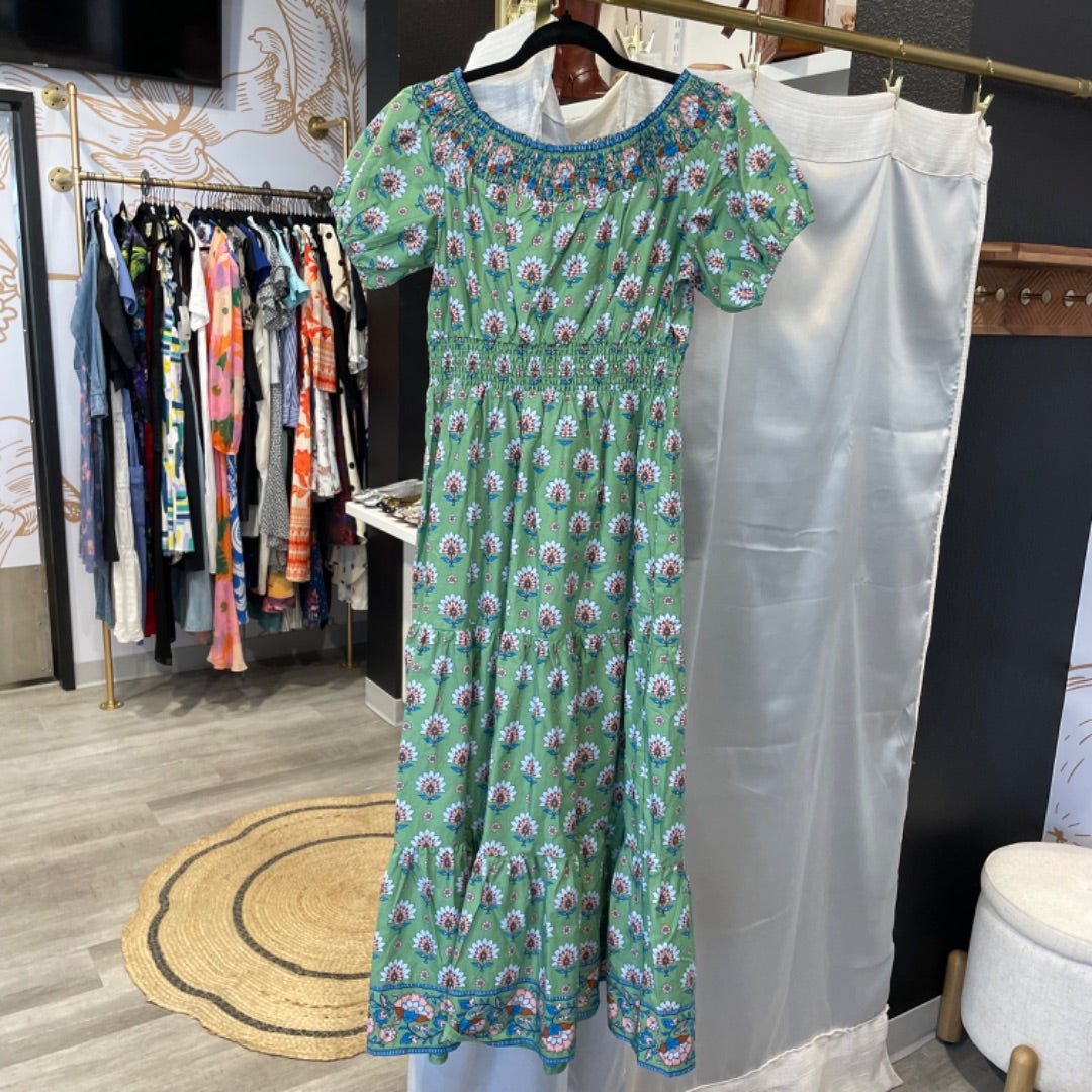Boden | Women's Green Floral Print Short Sleeve Dress | Size: 6