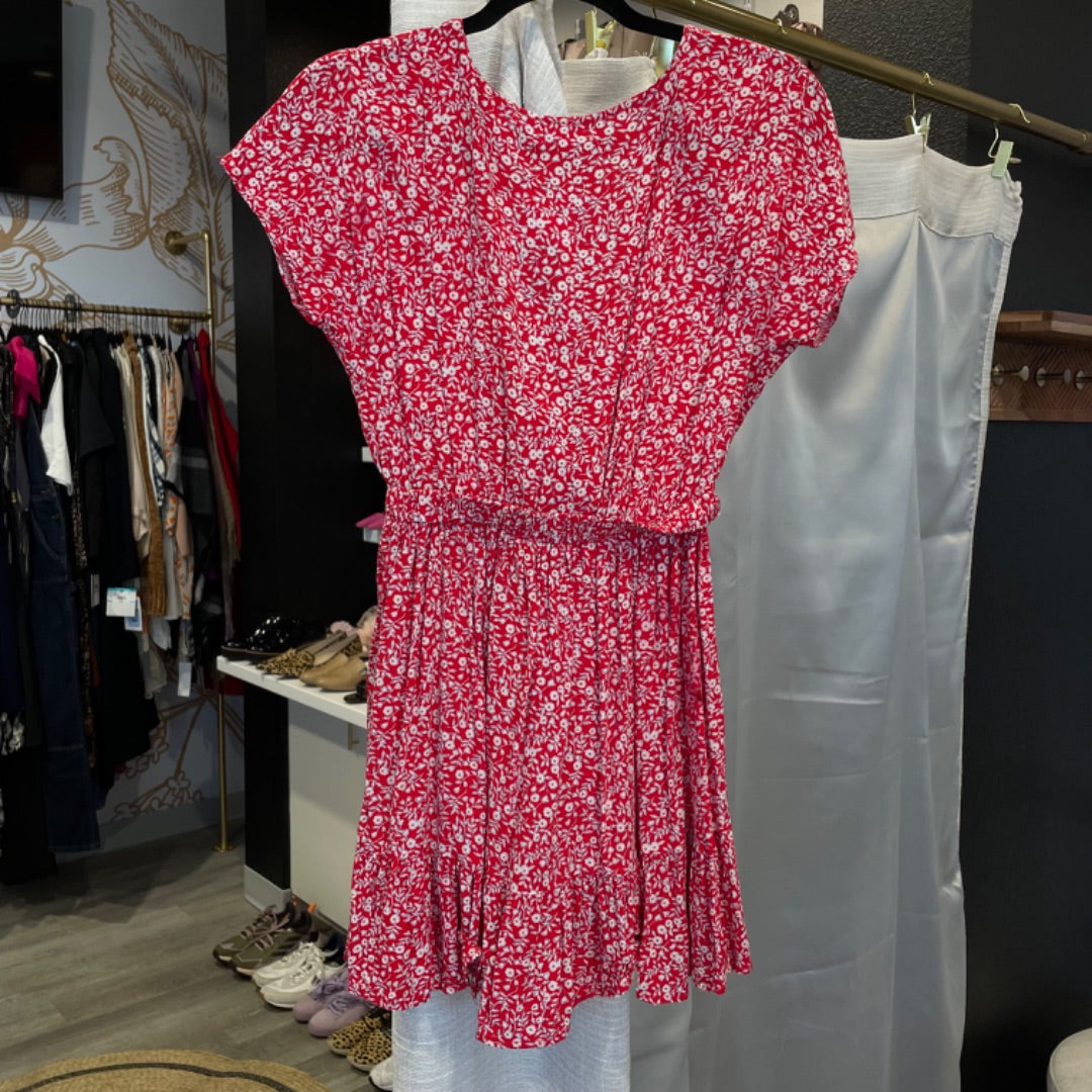 C + D + M | Women's Red and White Floral Print Tie Front Dress | Size: S