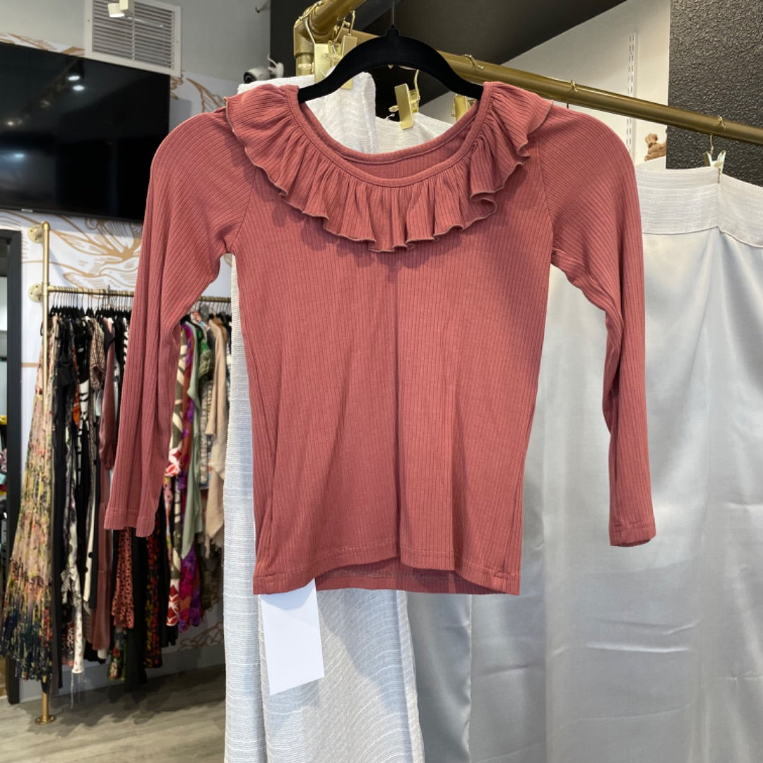 Chucky Plum | Girl's Brown Ruffle Top Long Sleeve Top | Size: 7Y