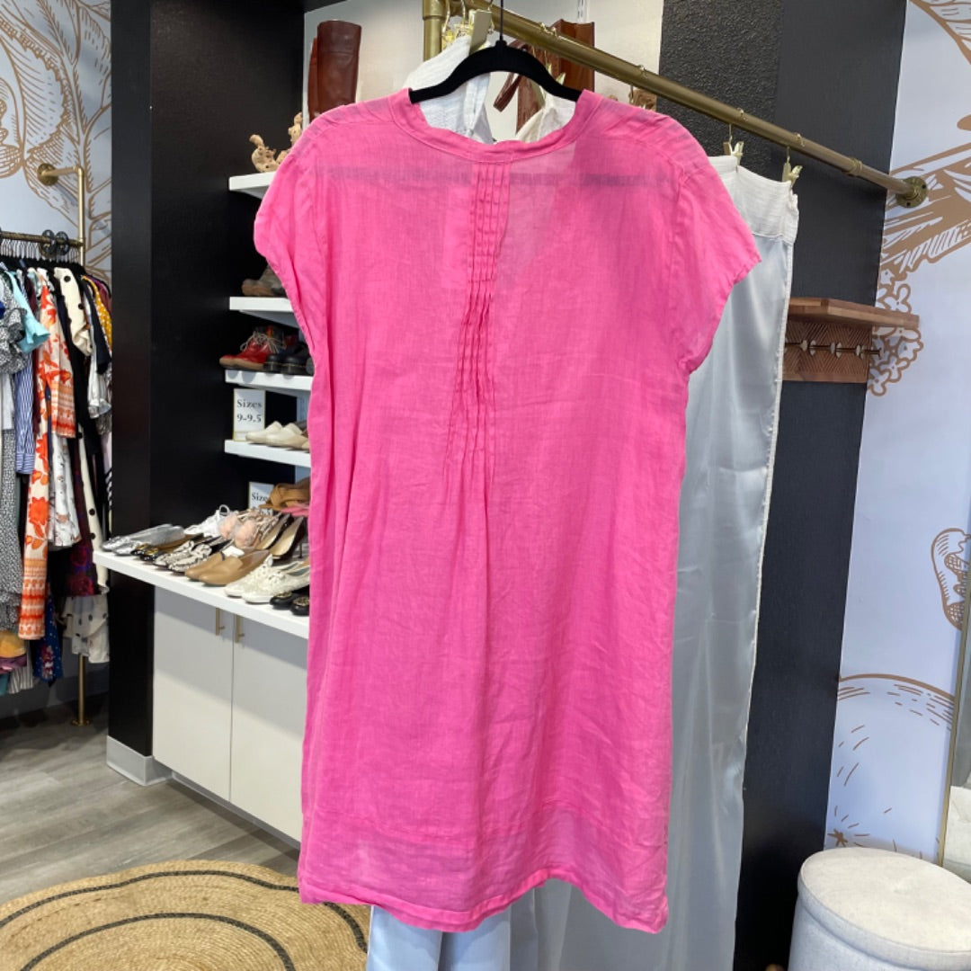 CP SHADES | Women's Pink Pleat Short Sleeve Linen Dress | Size: L