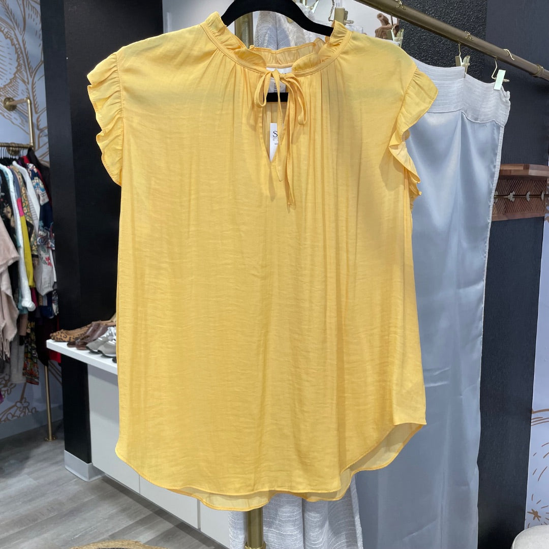 Cupcakes & Cashmere | Women's Yellow Ruffle Sleeve Blouse | Size: L