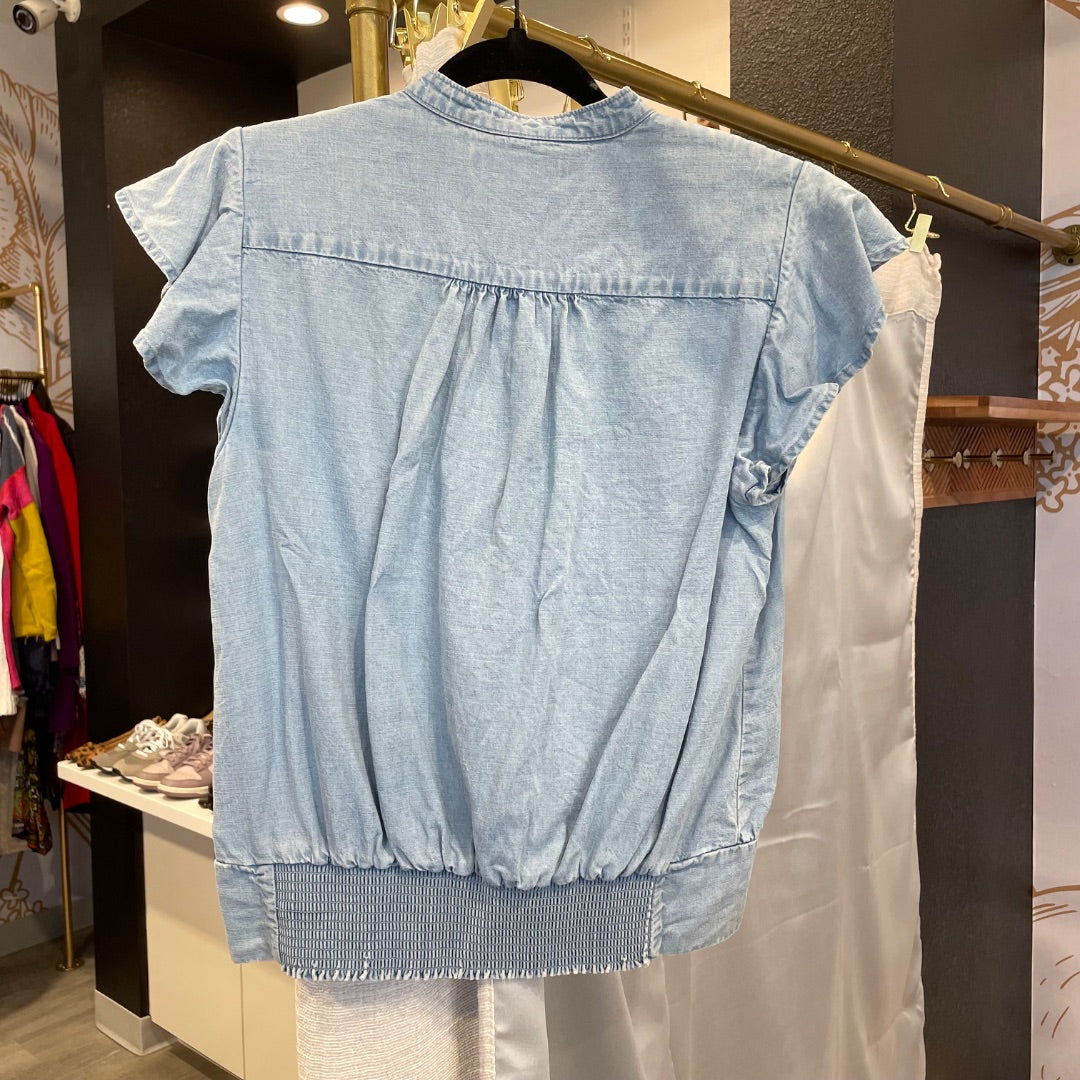 Frame | Women's Denim Ruffle Short Sleeve Top | Size: S