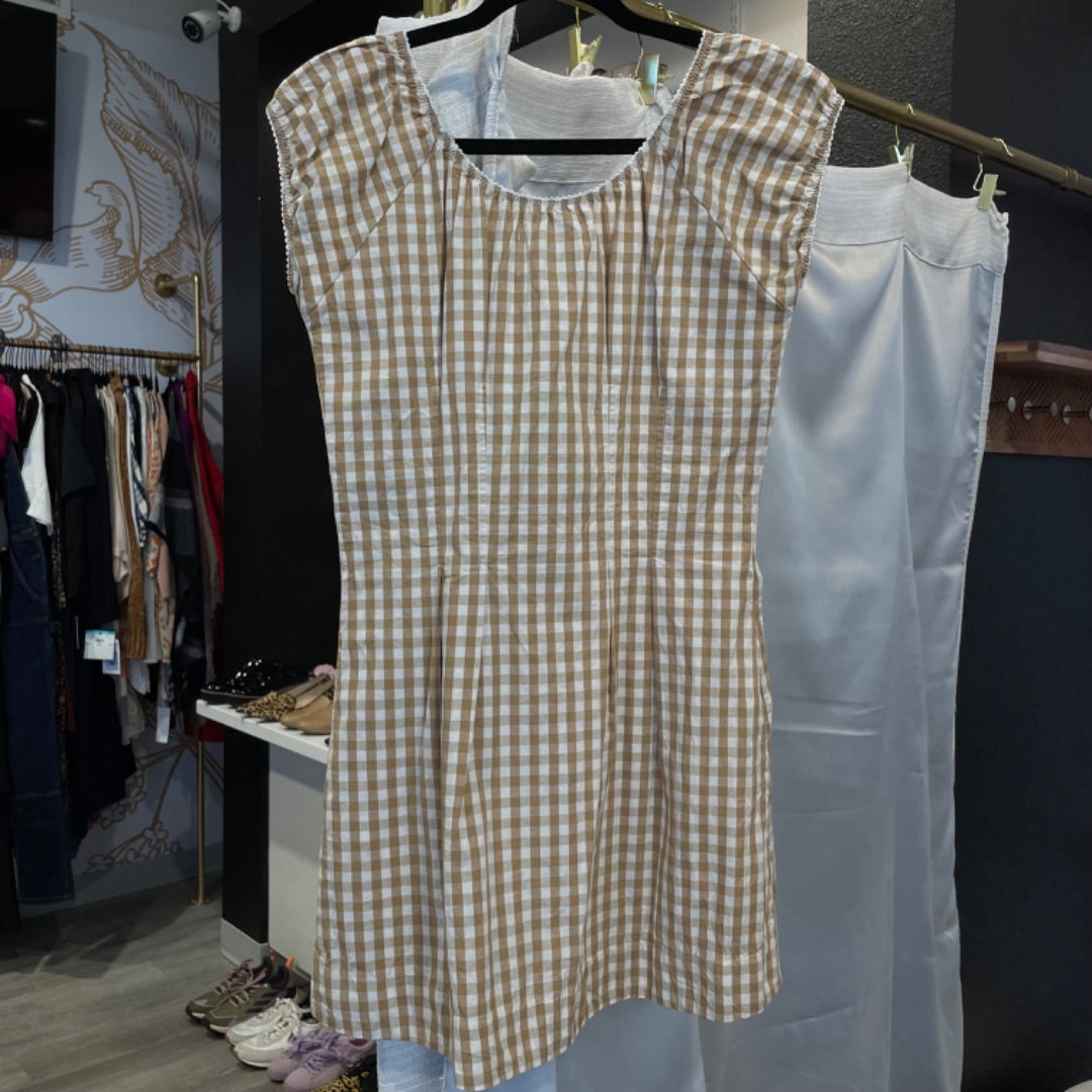 Frankies Bikinis X Bella | Women's Tan and White Checker Mini Dress | Size: M