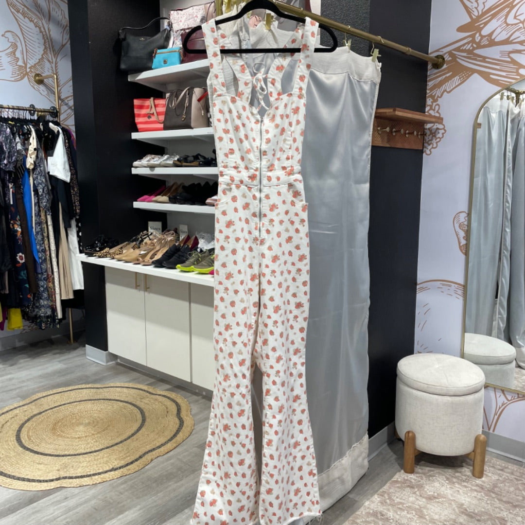 Free People | Women's White and Strawberry Red Curvy Overalls | Size: 6