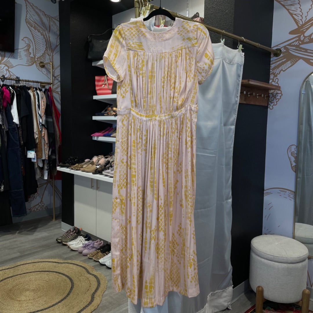 Free People | Women's Yellow and Pink Silky Wrap Dress | Size: S