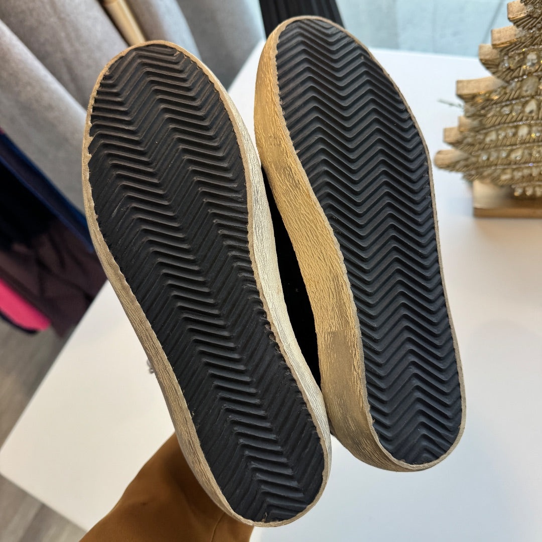 In excellent condition, they blend comfort, craftsmanship, and that iconic Golden Goose flair.