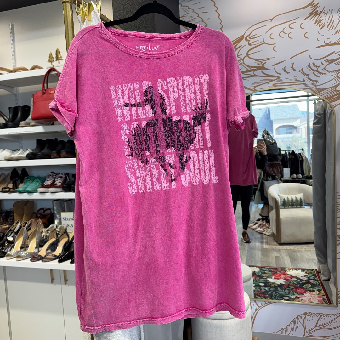 Hrt & Luv | Women's Pink Vintage Wash Cowgirl Oversized Tee | Size: S