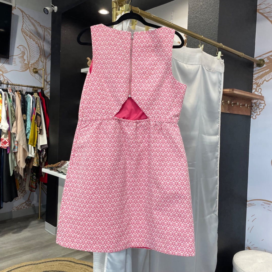 I Love Ronson | Women's Pink and White Pattern Open Back Shift Dress | Size: L