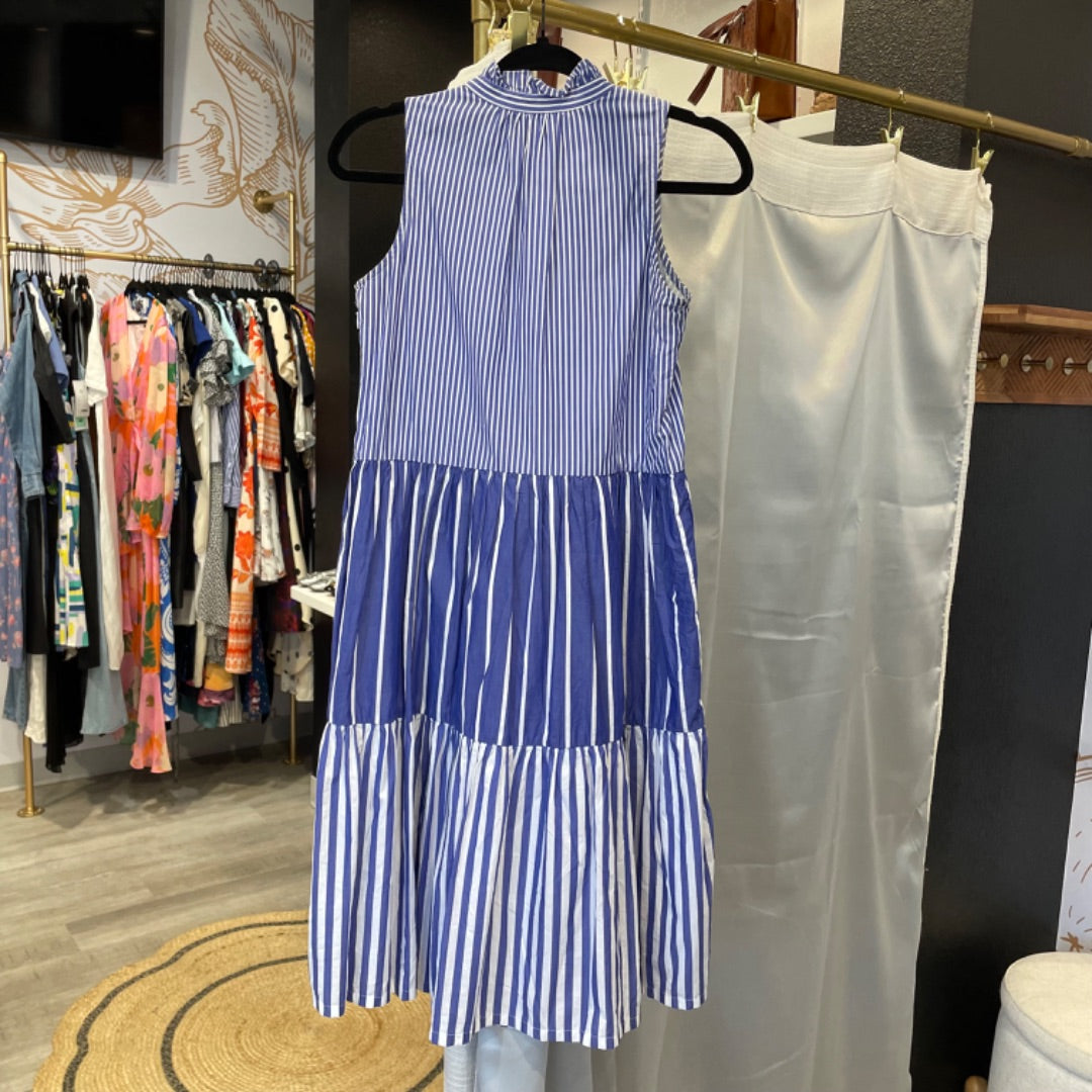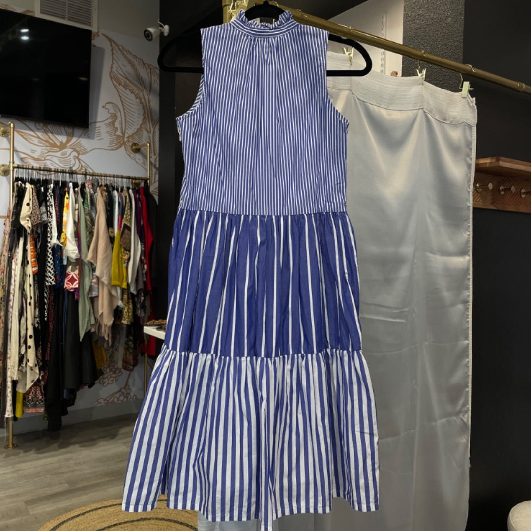 J. Crew | Women's Blue and White Stripe Sleeveless Mid Dress | Size: XXS