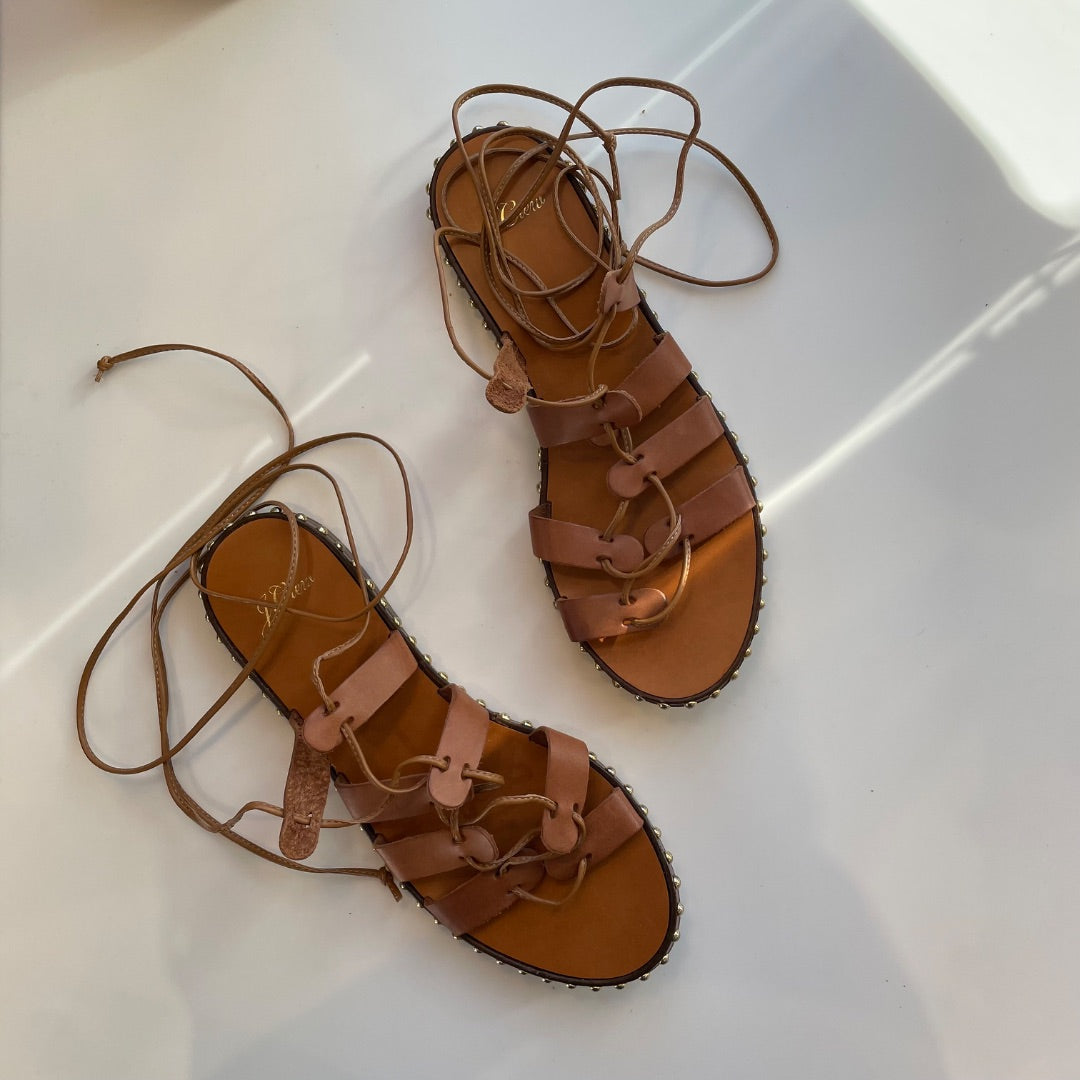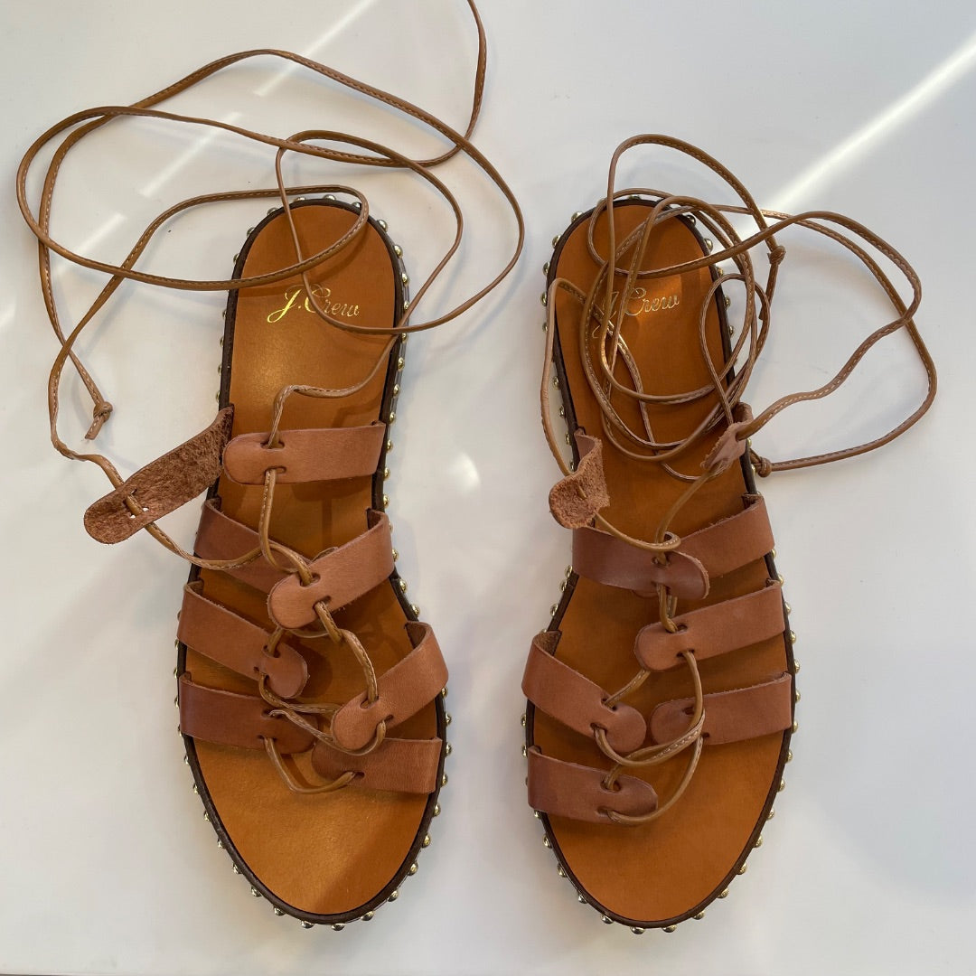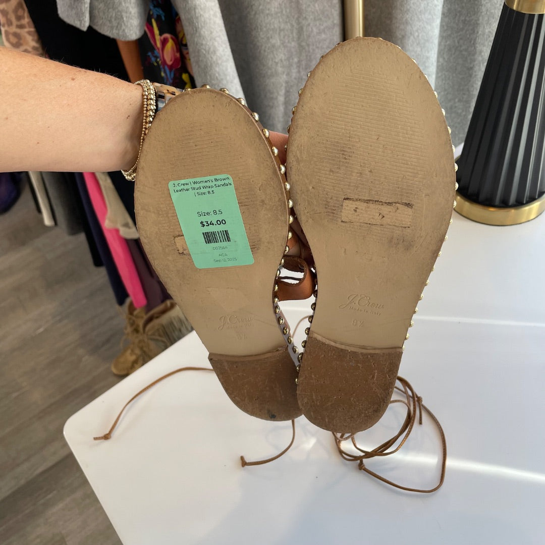 J. Crew | Women's Brown Leather Stud Wrap Sandals | Size: 8.5