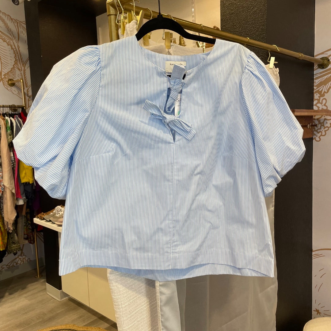 Kate Spade for Target | Women's Blue and White Stripe Puff Sleeve Tie Front Top | Size: M