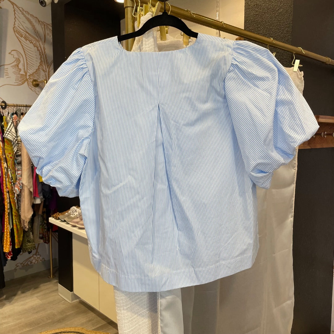 • Load image into Gallery viewer, Kate Spade for Target | Women's Blue and White Stripe Puff Sleeve Tie Front Top | Size: M