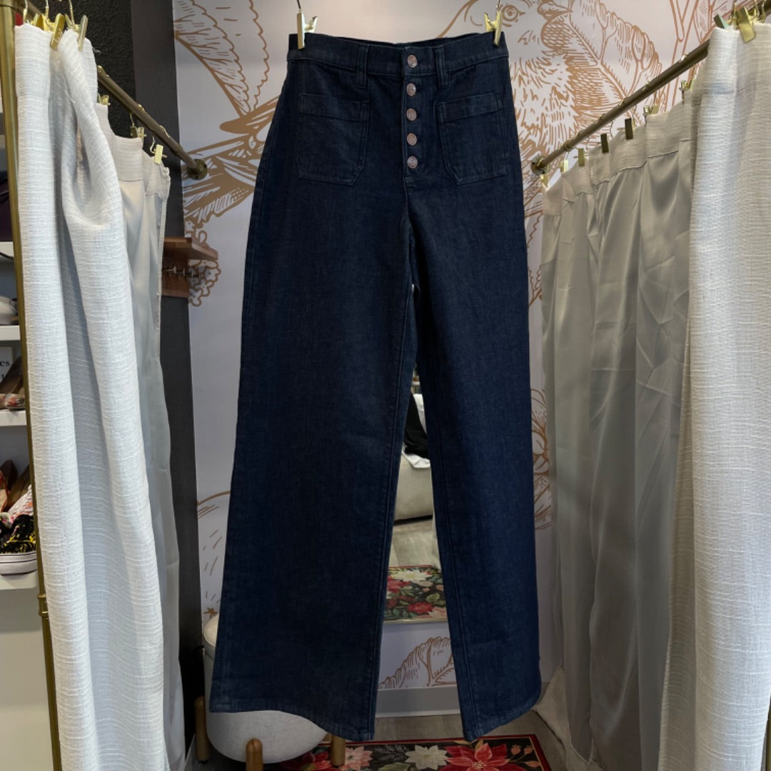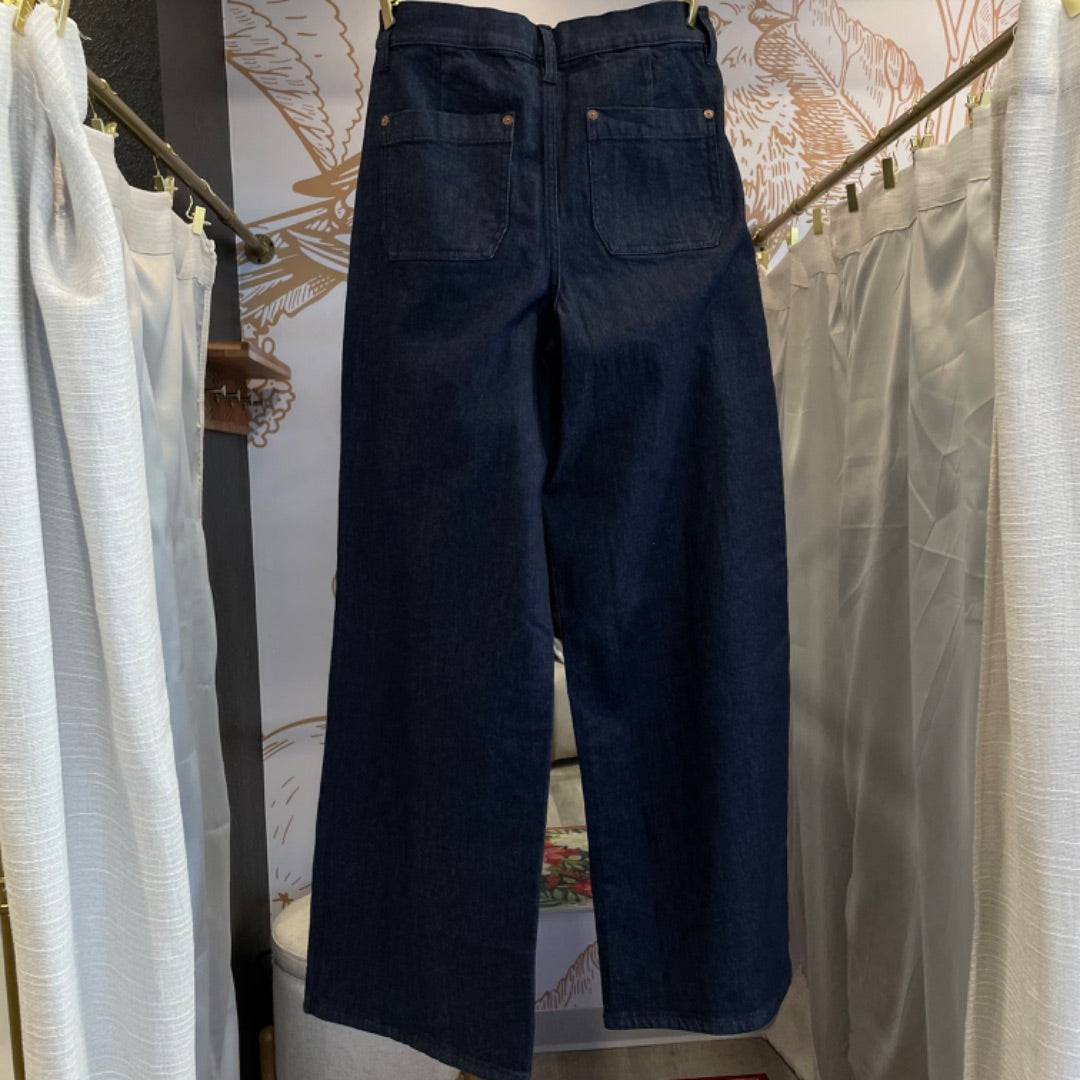 Lands' End | Women's Blue Dark Wash Pocket Front Wide Leg Jeans | Size: 6