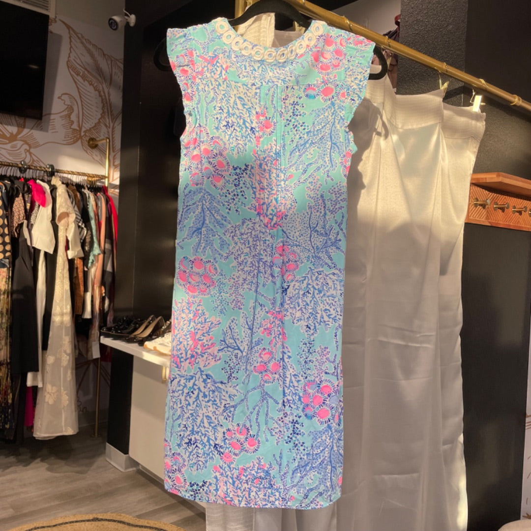Lilly Pulitzer | Women's Blue and Pink Embroidered Collar Sleeveless Dress | Size: XS