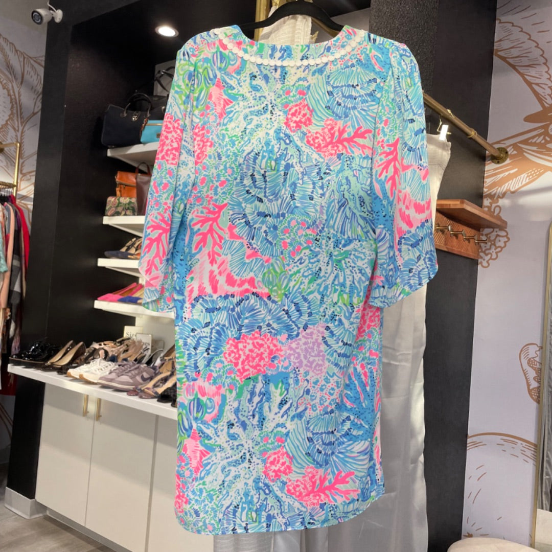 Lilly Pulitzer | Women's Blue and Pink Sea Shell Print Dress | Size: XS