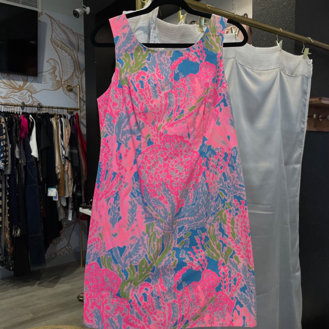 Lily Pulitzer | Women's Pink and Blue Patterned Mini Dress | Size: 8