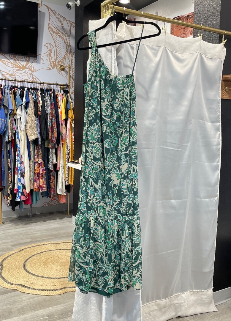 Loft | Women's Green Floral Print Long Dress | Size: S