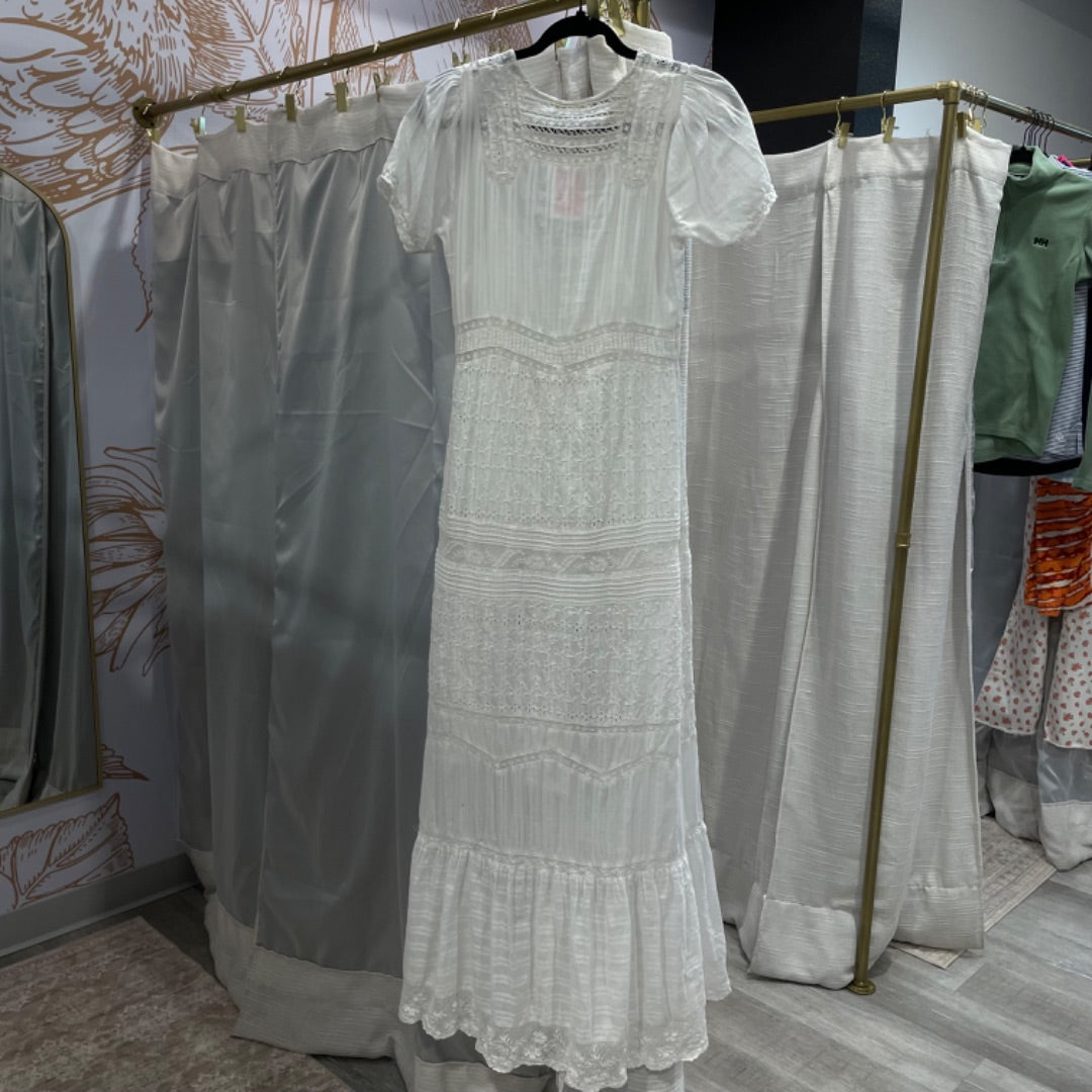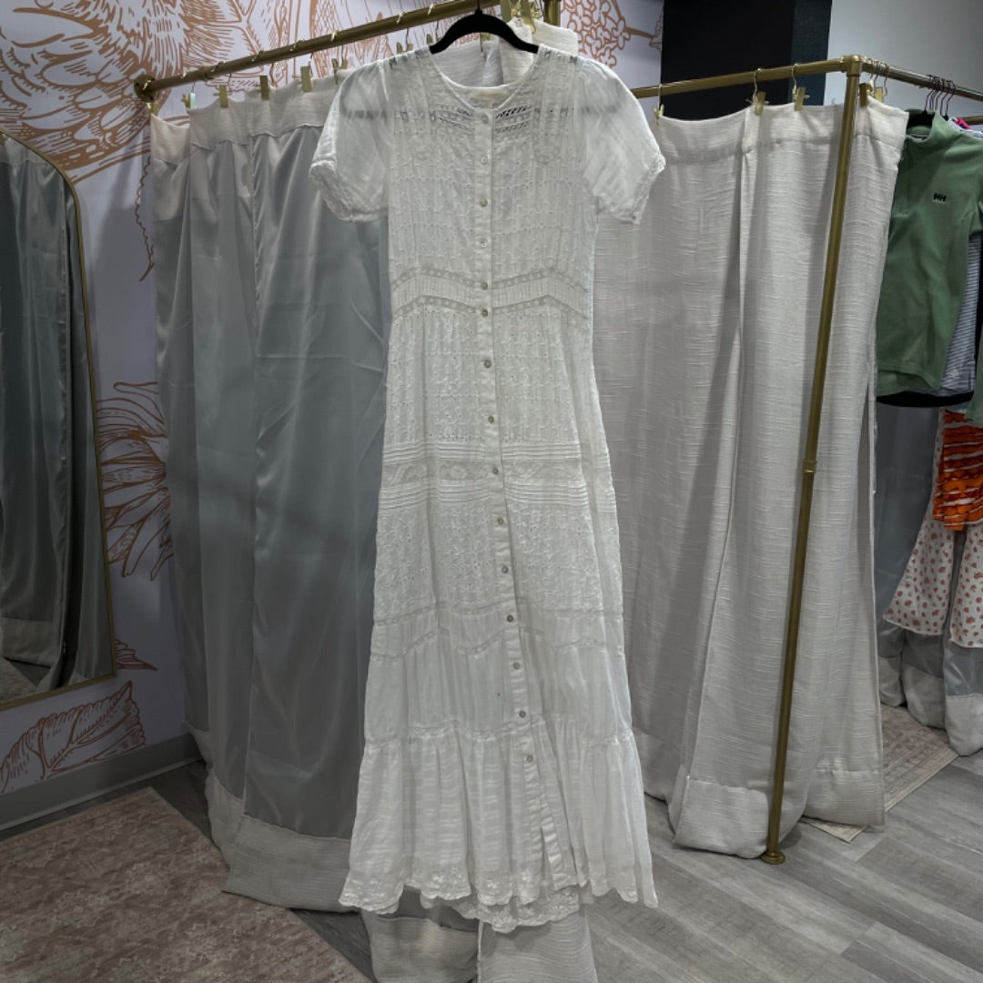 Love Shack Fancy | Women's White Boho Short Sleeve Maxi Dress | Size: 4