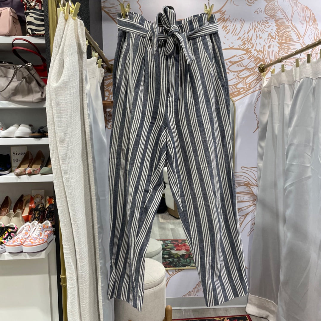 Madewell | Women's Blue and Cream Stripe Paperbag Waist Pants | Size: 0