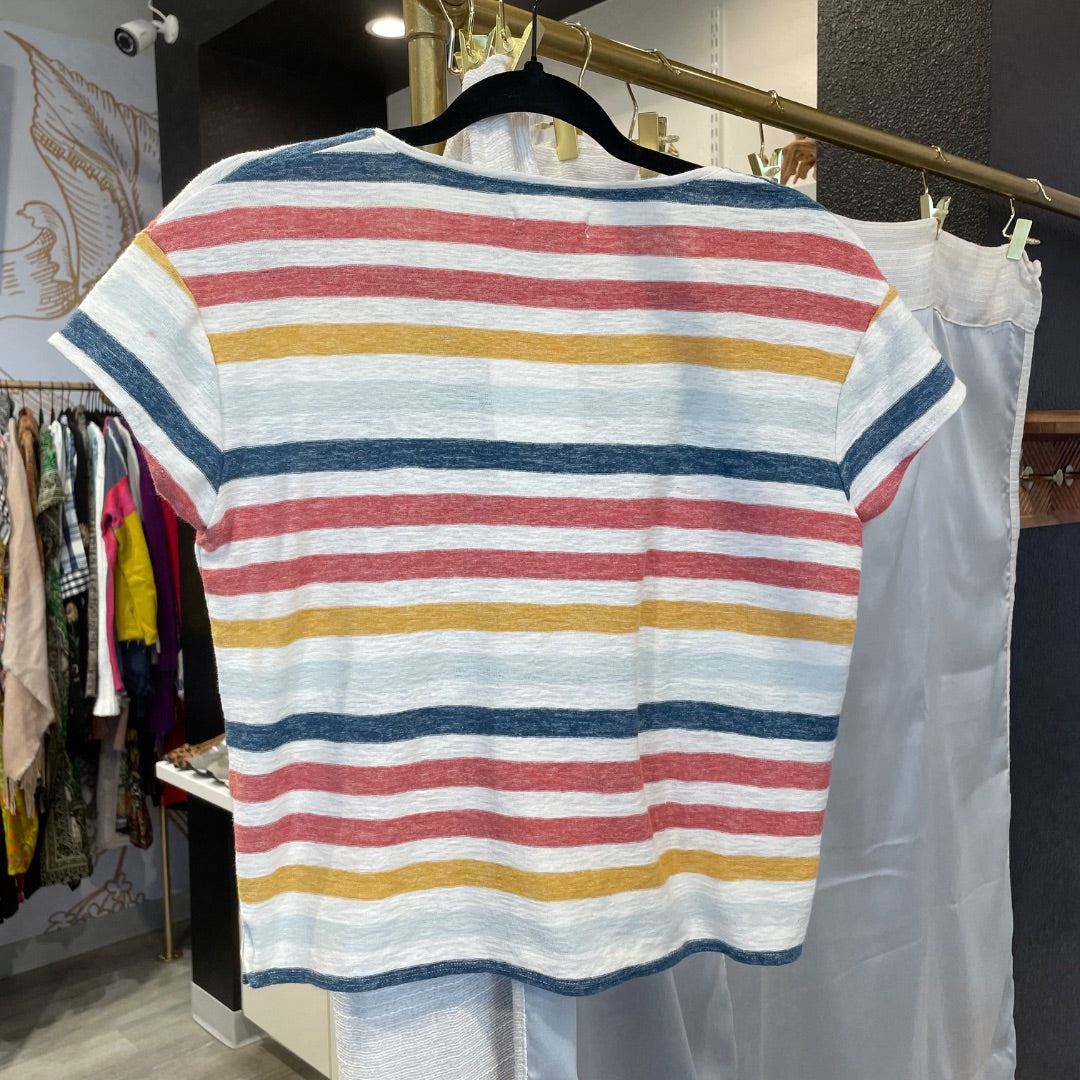 Madewell | Women's Red and Blue Stripe V Neck Tee | Size: XS