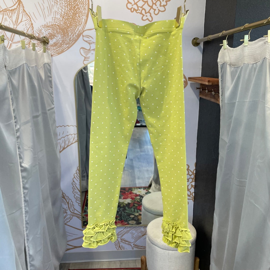 Matilda Jane | Girl's Green Polka Dot Ruffle Bottom Leggings | Size: 10Y