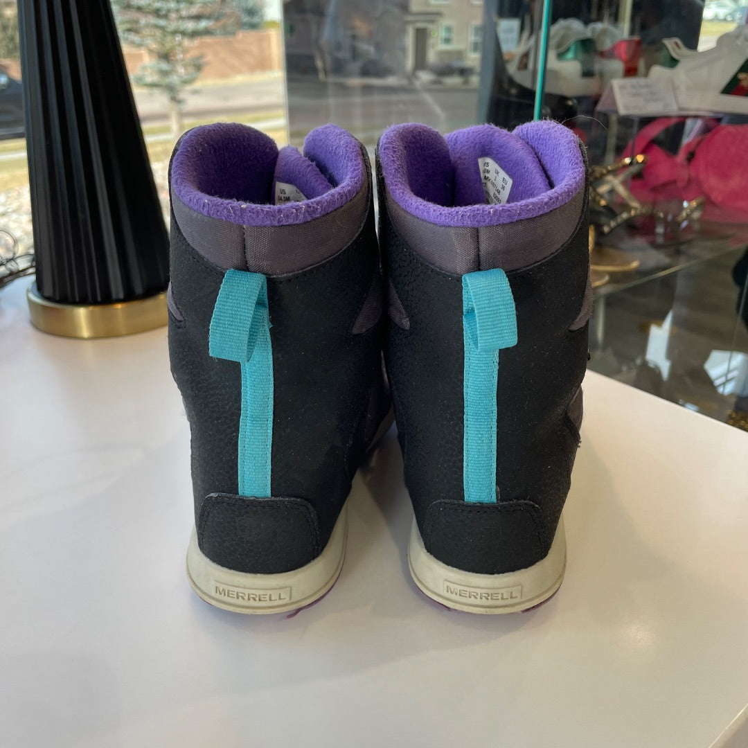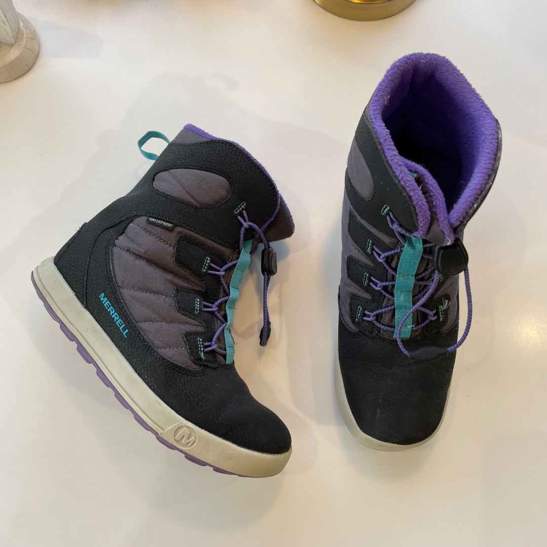 Merrell | Girl's Black and Purple Snow Bank Waterproof Boots | Sie: 4Y