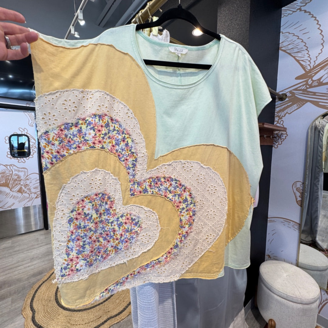 Oli & Hali | Women's Green Layered Heart Short Sleeve Shirt | Size: XL